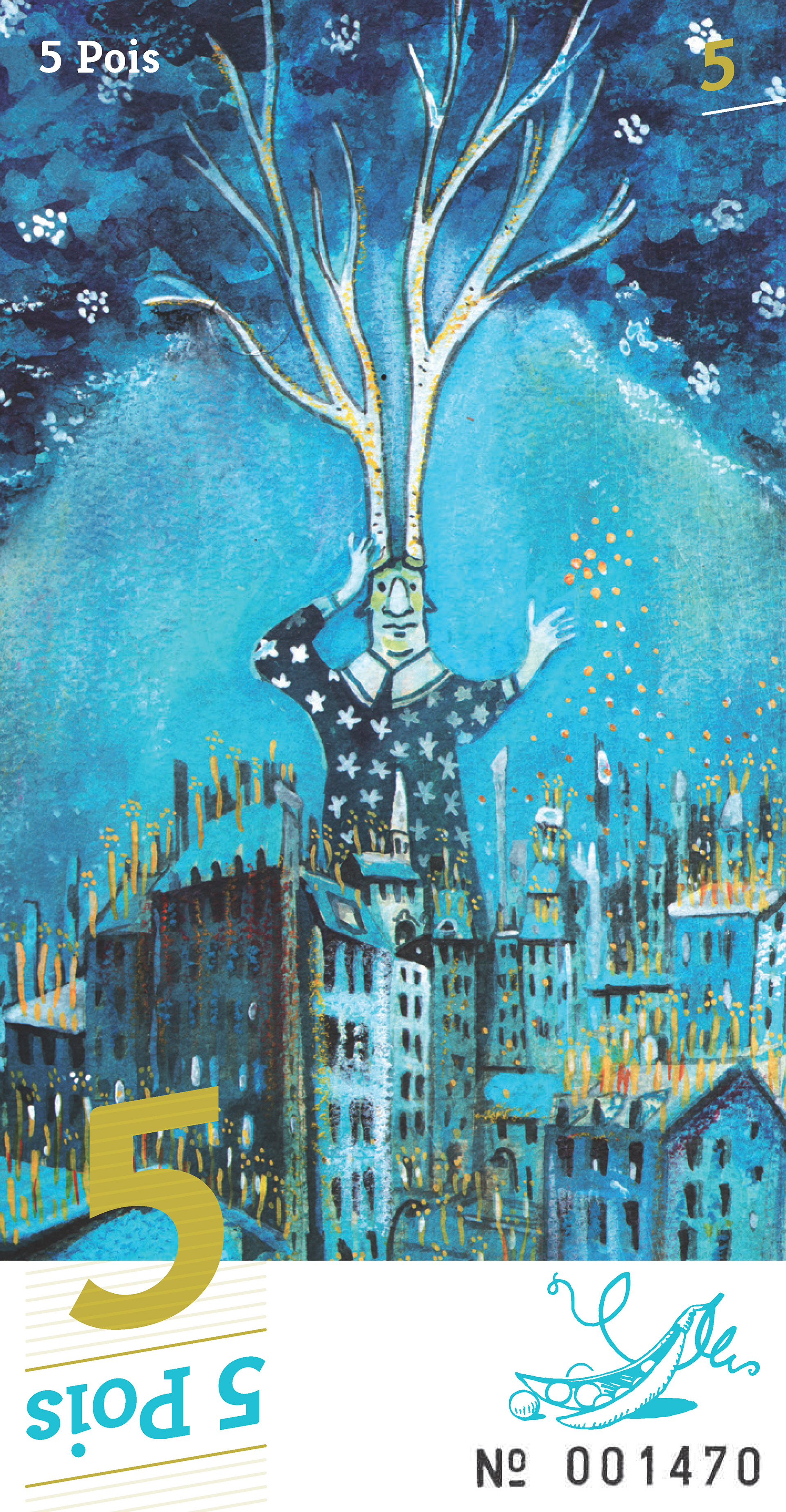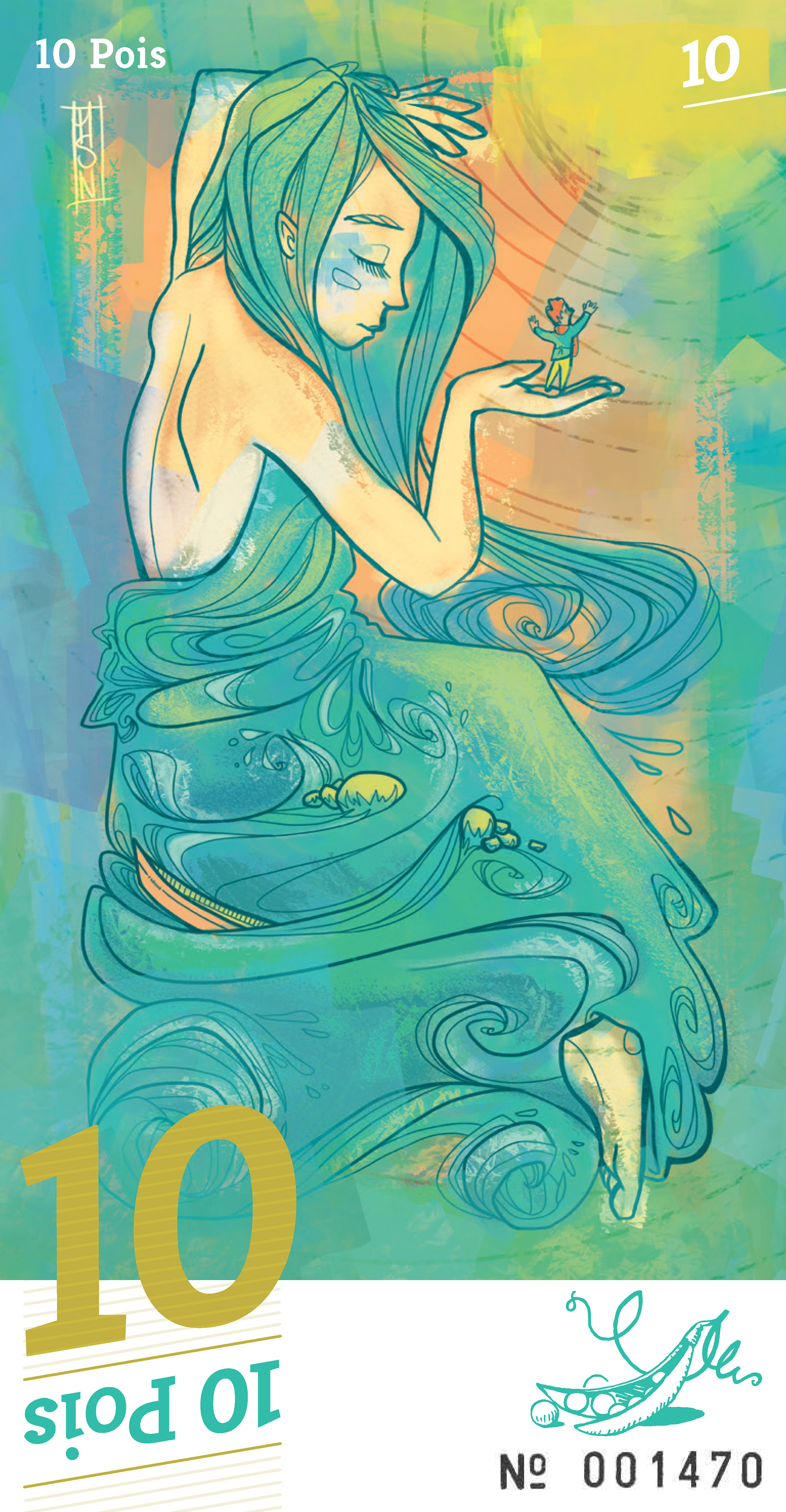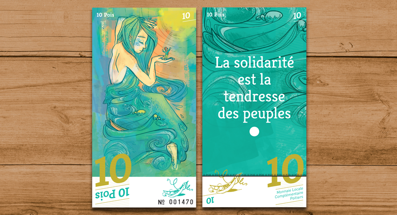Réalisation de l'illustration du billet de 10 Pois, monnaie locale complémentaire de la Vienne (86).