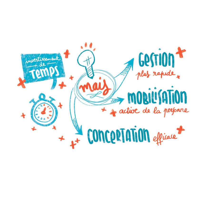 Facilitation graphique pour le département de la Vienne lors d'un symposium sur la référence de parcours. - création sur le vif des illustrations sur support papier - - affichage post événementiel soumis au vote du public - - exécution numérique des compositions sélectionnées -