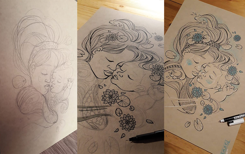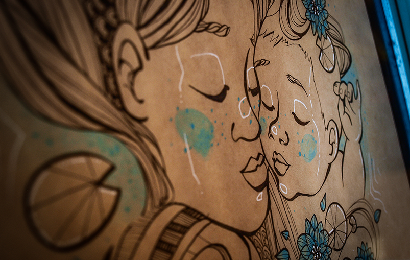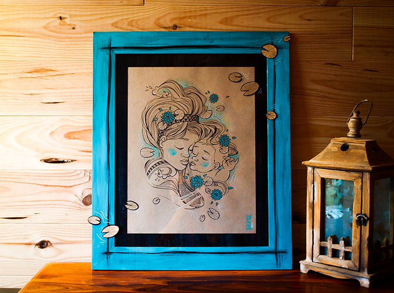 Encre de chine et acrylique sur Gmund kraft. 50 x 60 cm. Encadrement bois travaillé et illustré – encre de chine sur Gmund kraft, acrylique . A retrouver en boutique : http://ideogramme-boutique.fr/produit/entre-deux