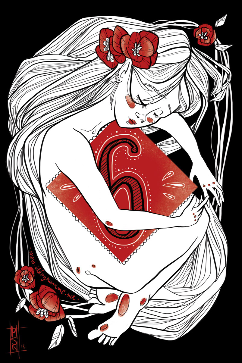 Création de l'illustration du 6 de cœur pour le jeux de carte collaboratif du Mouchoir.