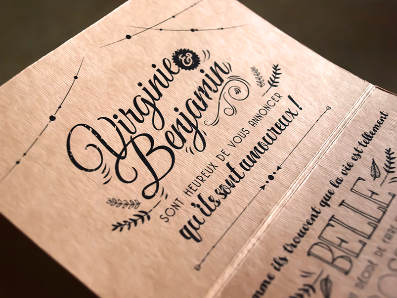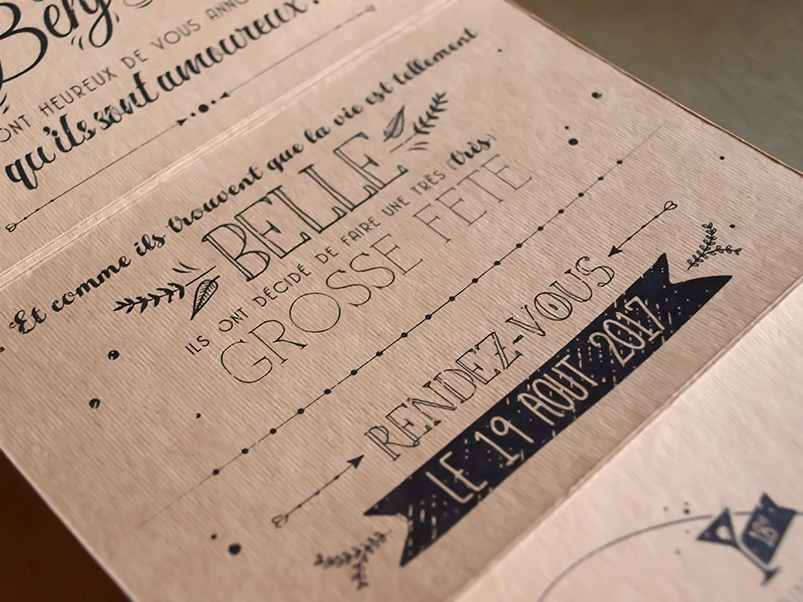 Faire-part sur mesure. - Faire-part - Papier Gmund kraft épais. Dépliant 4 plis avec carton détachable.