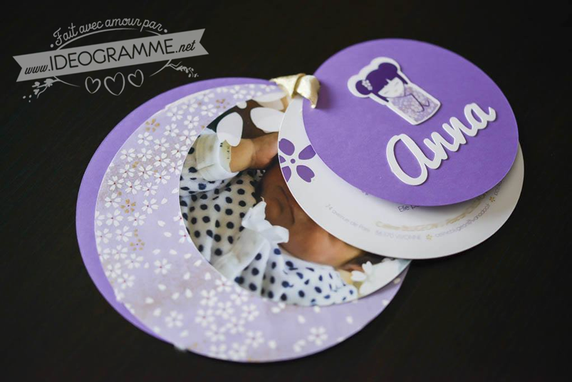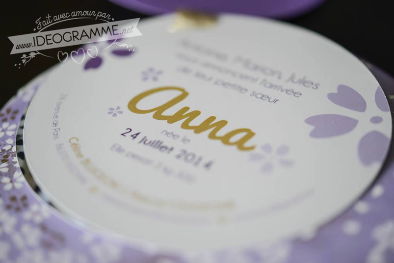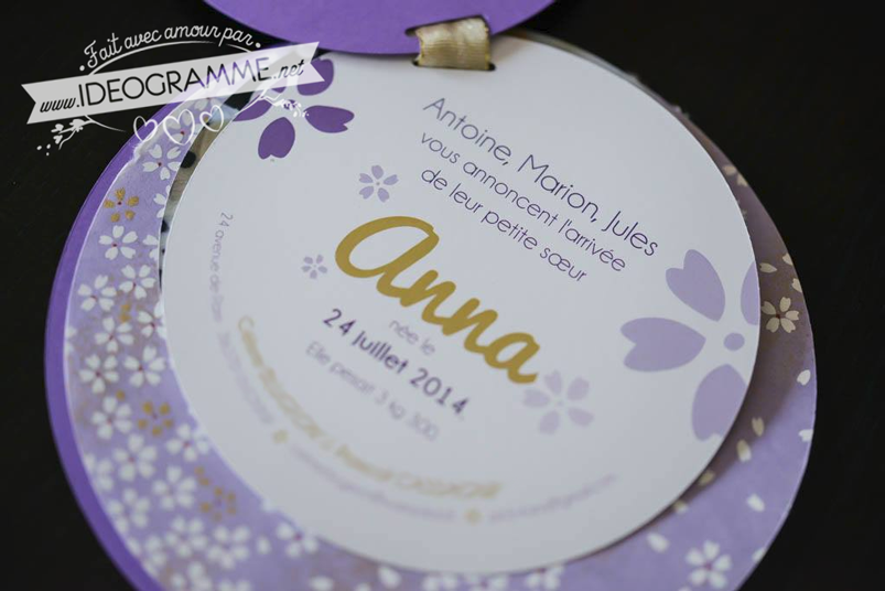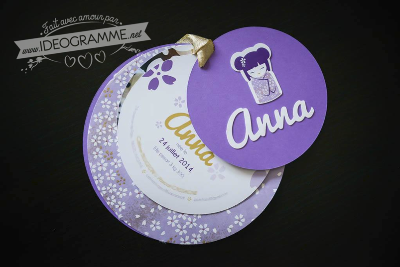 Faire-part de naissance sur mesure. Papier Washi doré - découpé. Cartonette découpé. Ruban coton doré.